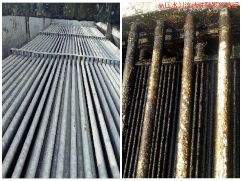 高压水射流清洗蒸发冷前后
