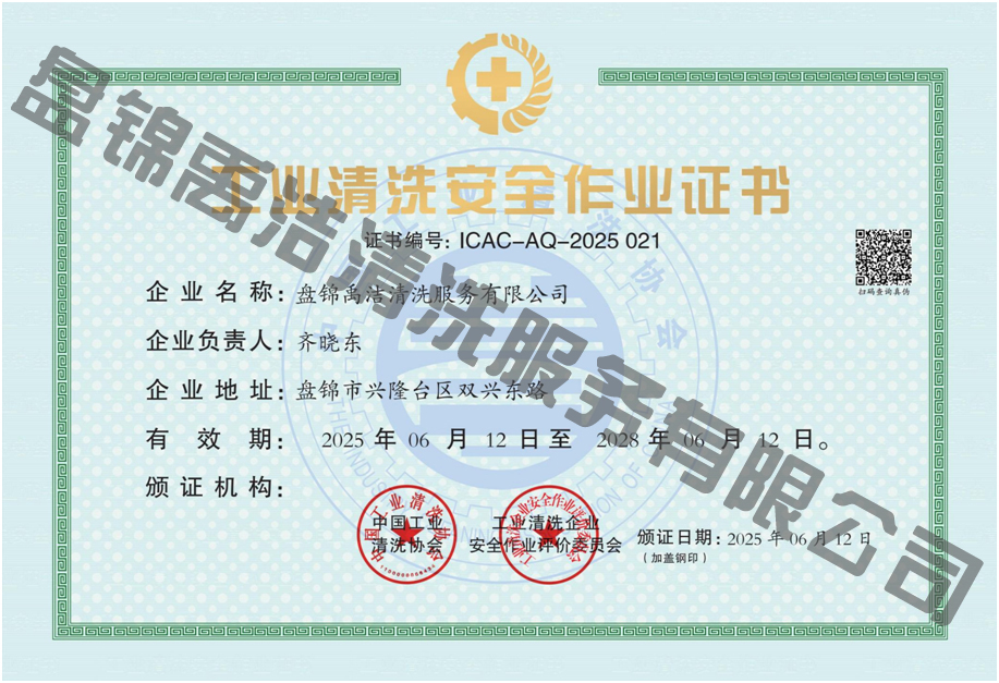 工业清洗企业资质证书(物理清洗A级、化学清洗A级)